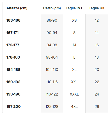- Imbottitura leggera, antivento e trattamento idrorepellente.